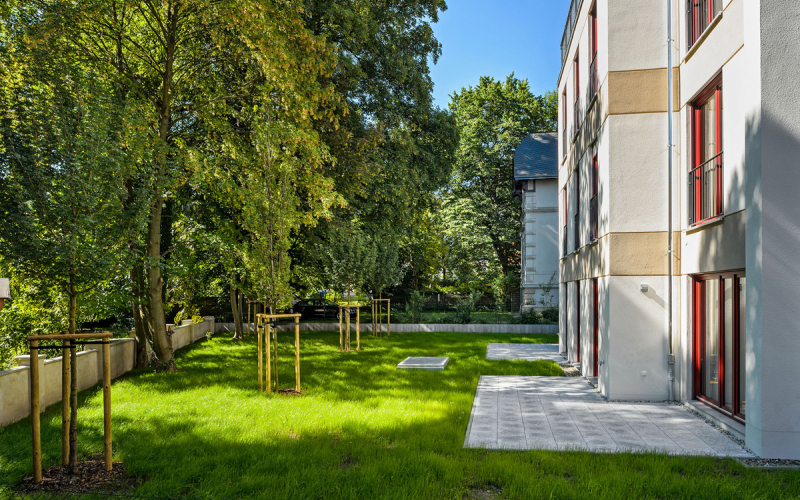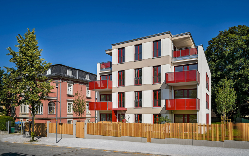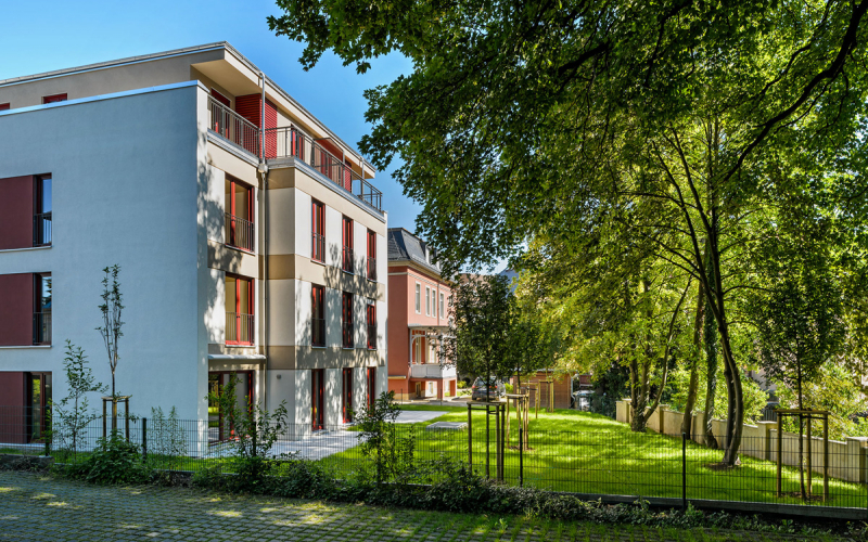 Das Grundstück befindet sich in ruhiger, grüner Lage mit dem Großen Garten in Sichtweite. Hier enstand eine neue Stadtvilla mit acht 3-, 4- und 5-Raumwohnungen sowie Tiefgarage. Zum Wasaplatz mit allen Einkaufsmöglichkeiten und Straßenbahn-/Busanbindung sind es ca. 5 Gehminuten. Das Gebäude wurde nach dem KfW70-Standard (nach EnEV2014) errichtet und besitzt eine Wärmepumpenanlage für Heizung und Warmwasser.