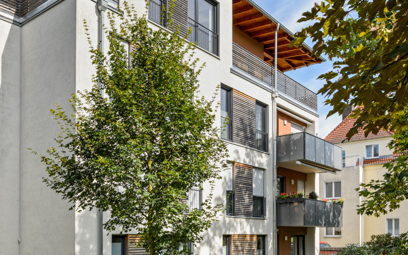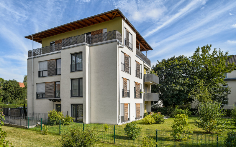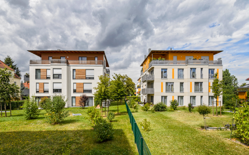 7 neue Eigentumswohnungen in sehr ruhiger, grüner Umgebung, 5 Gehminuten vom Großen Garten entfernt, und natürlich mit Erdwärmeheizung.